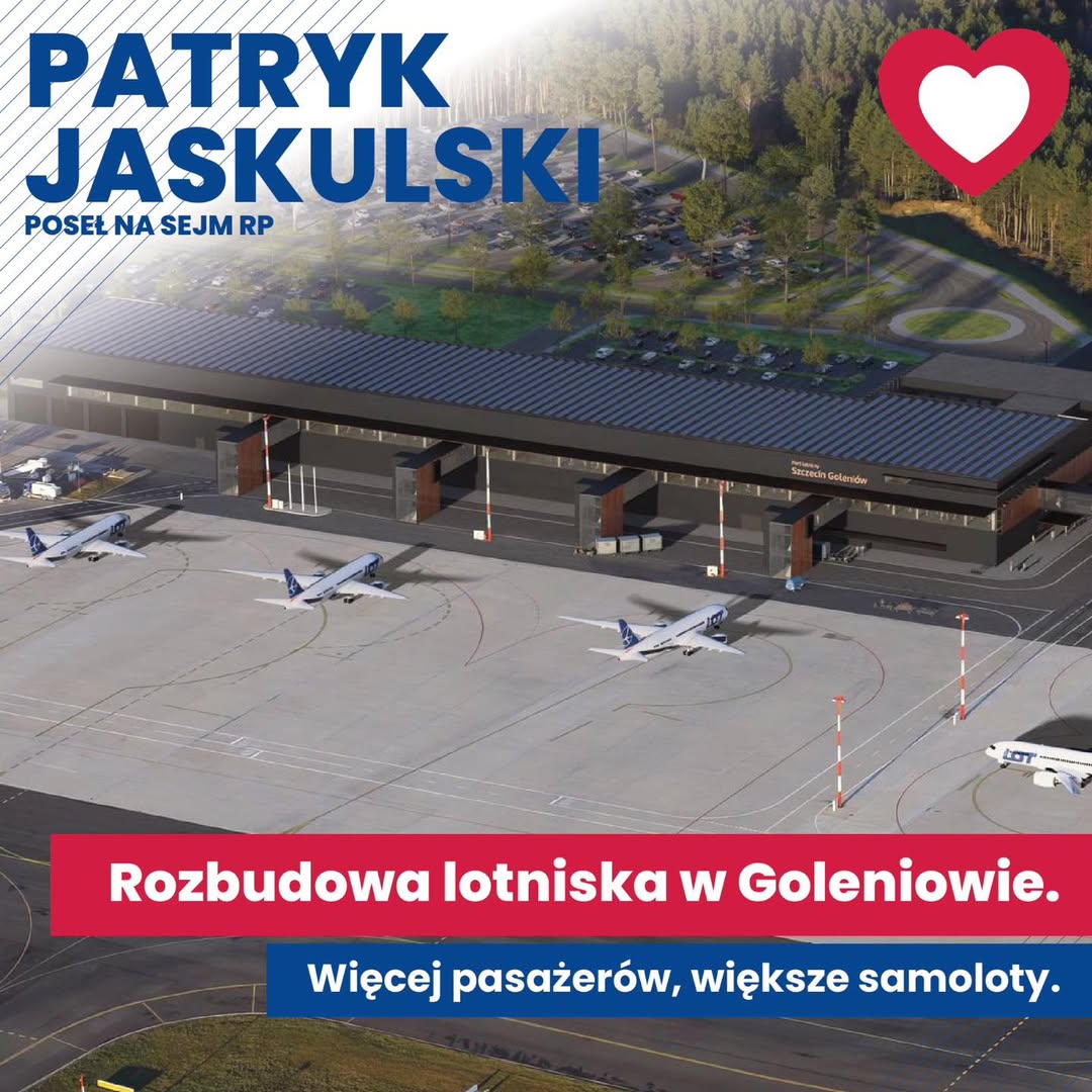 Lotnisko Szczecin-Goleniów zostanie przebudowane. Powstaną nowe budynki odpowiadające normom unijnym. Zamieszczone będą panele fotowoltaiczne, a cały kompleks ma spełniać normy energooszczędne ⚡️